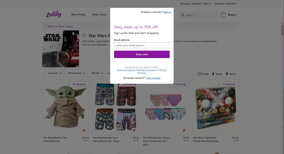 I've never been to zulily before - i guess they do the pinterest shit of "you can't browse until you sign up"?