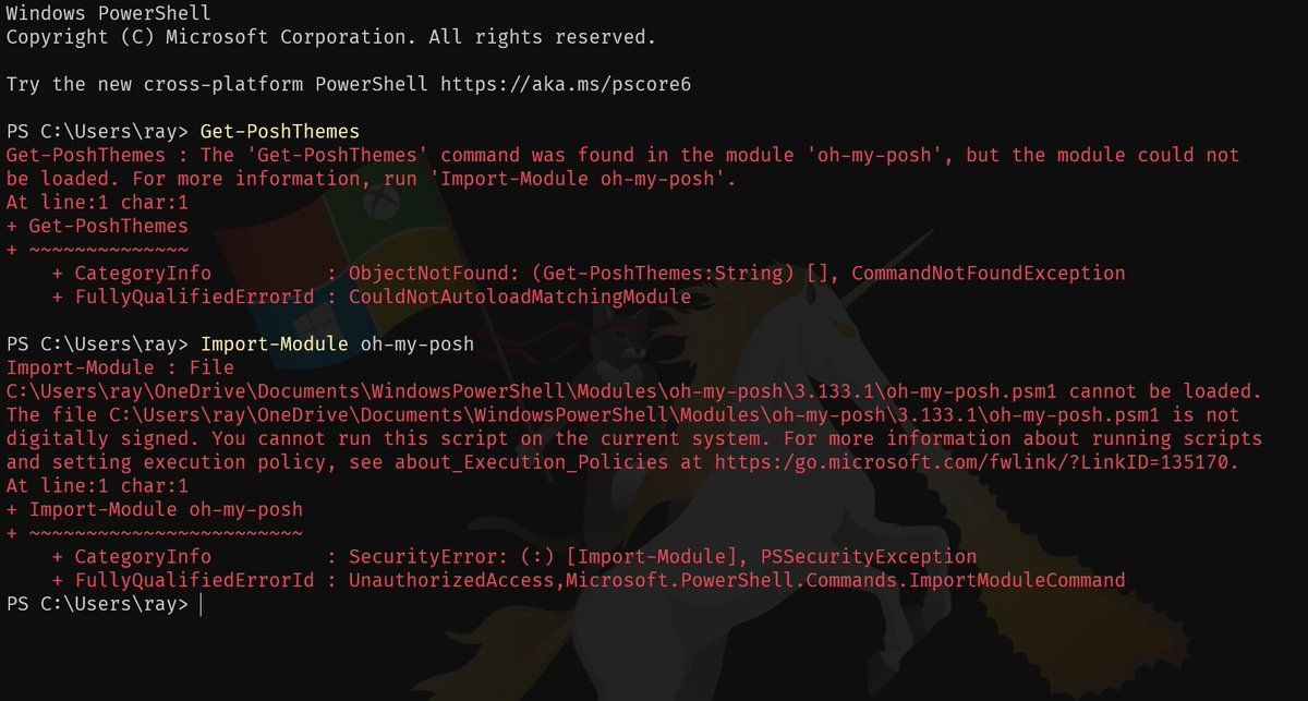 Trying to install oh-my-posh, and PowerShell is fighting me every step. I've added an execution policy to allow scripts, but apparently that wasn't enough.