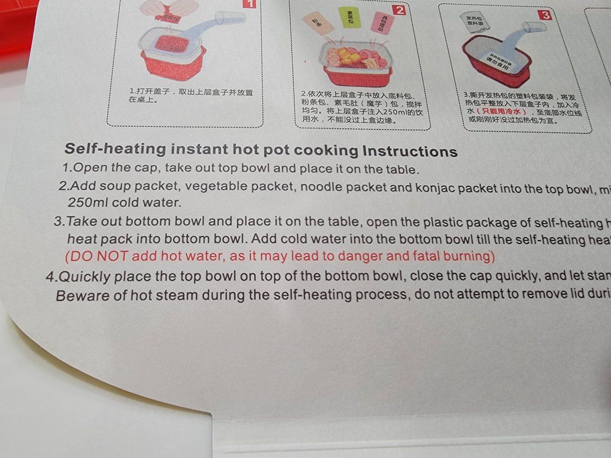 My daughter and I have finally found self heating hot pot meals and I love the fact that it can kill you.