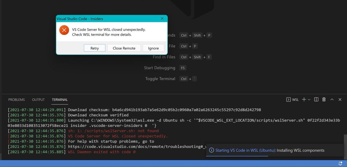 FYI, if you are playing with Windows 11, VSCode + WSL doesn't seem to play well together yet. (Of course, you can still open those files via $wsl\etc.)