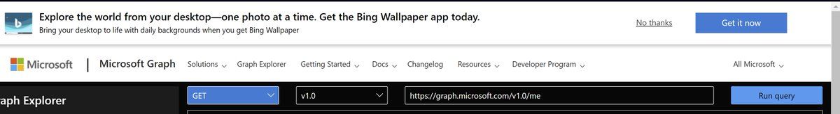 Since I call out Google for stupid crap like this, Microsoft, if I'm loading your Graph Explorer, a developer tool, why are you advertising desktop wallpapers in a huge banner on top of the page??