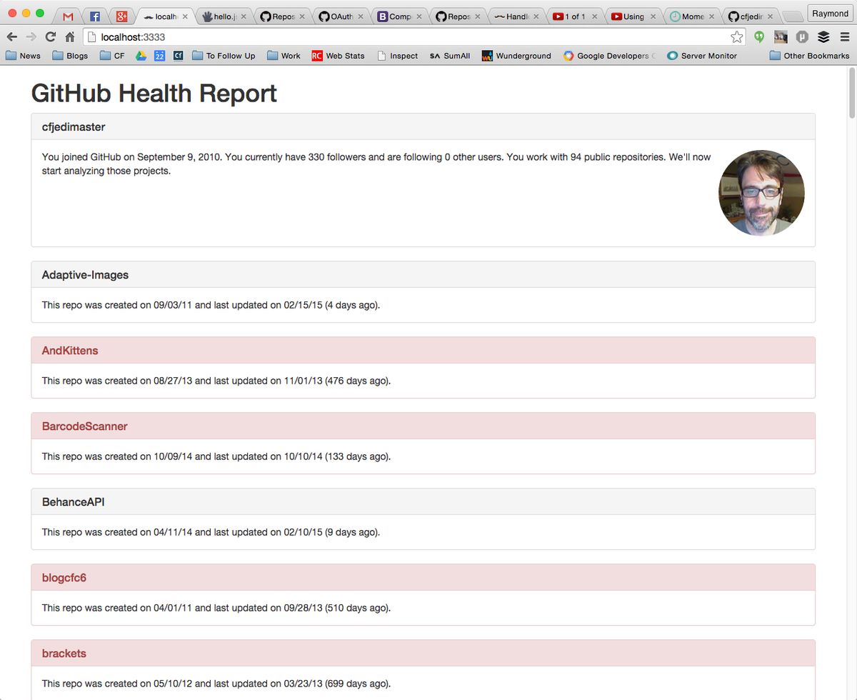 First stab, ONLY reporting/noticing "old" github repos.