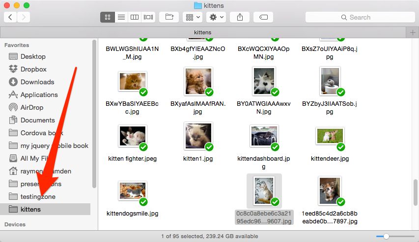I don't really have to explain this, but I've got a folder of 95 kitten pics. And a shortcut it in Finder.