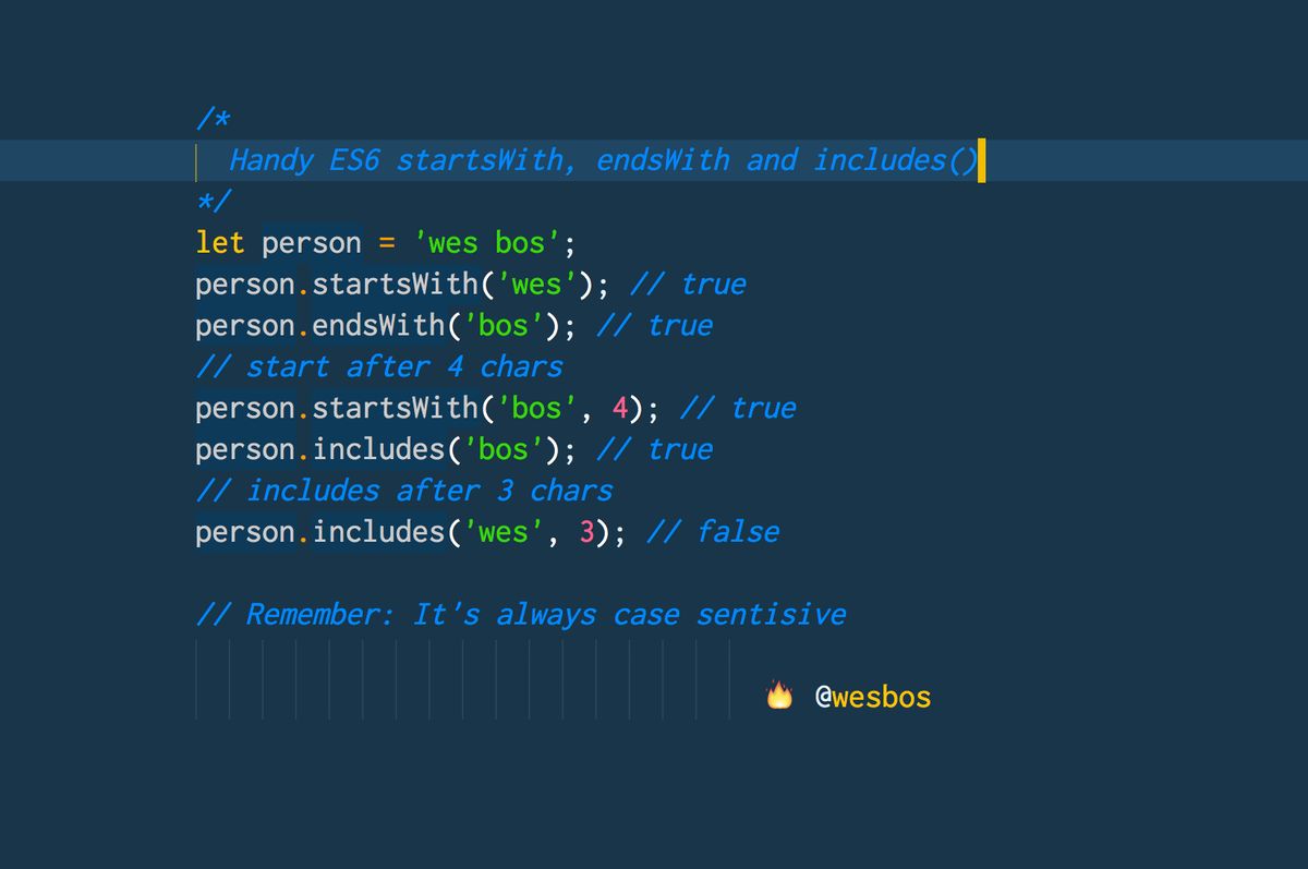 : 🔥 Three less JavaScript Regexes you'll have to write with ES6 startsWith(), endsWith() and includes()