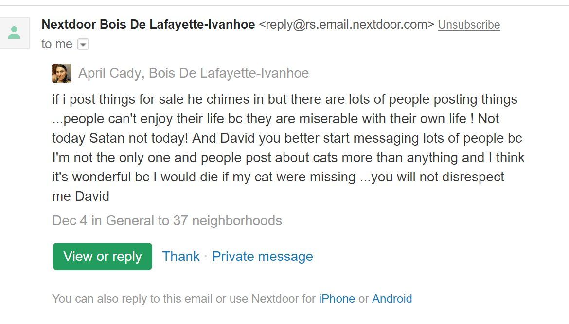 I freaking LOVE the nextdoor social network. "NOT TODAY SATAN NOT TODAY" #bestofnextdoor
