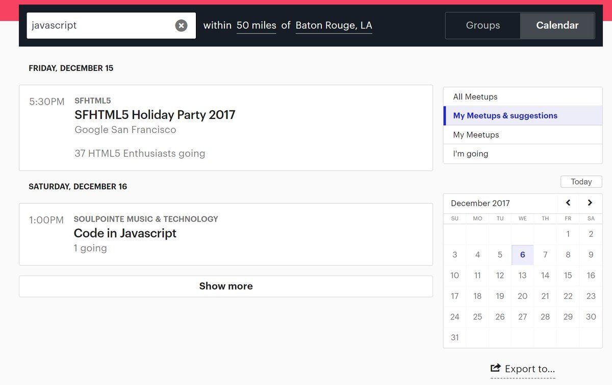 So Meetup thinks San Francisco is within 50 miles of Baton Rouge. Not sure about that.