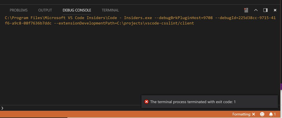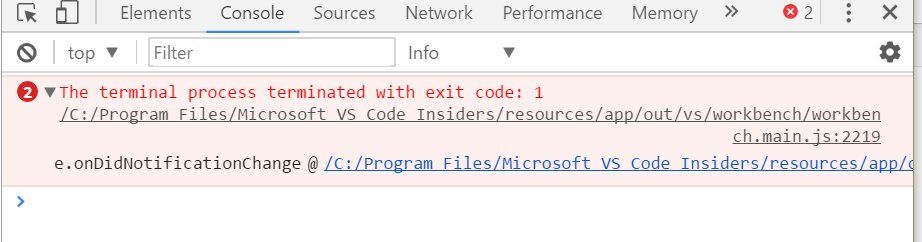 So that is with Insiders - even better - when I use the non-Insiders VSCode, it exists with code 2.