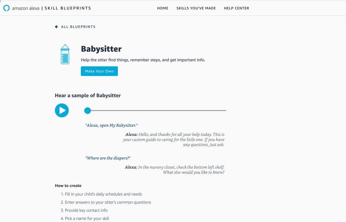 This is an absolutely freaking *amazing* Alexa Blueprint sample - a custom skill just for babysitters in your house.